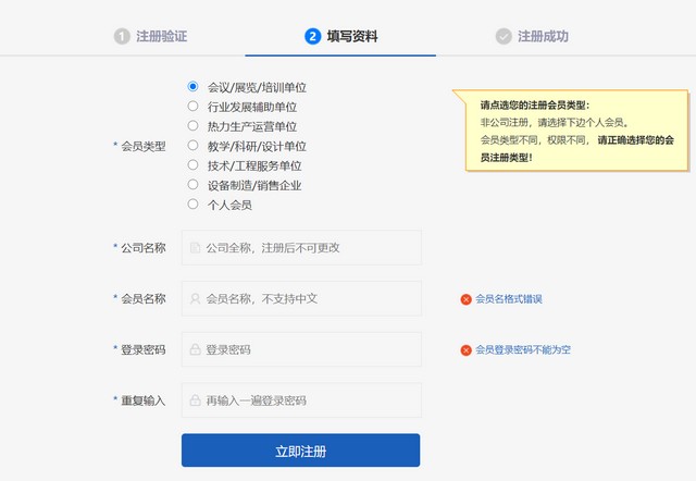 中能供熱網會員類型包括:企業(yè)會員和個人會員;