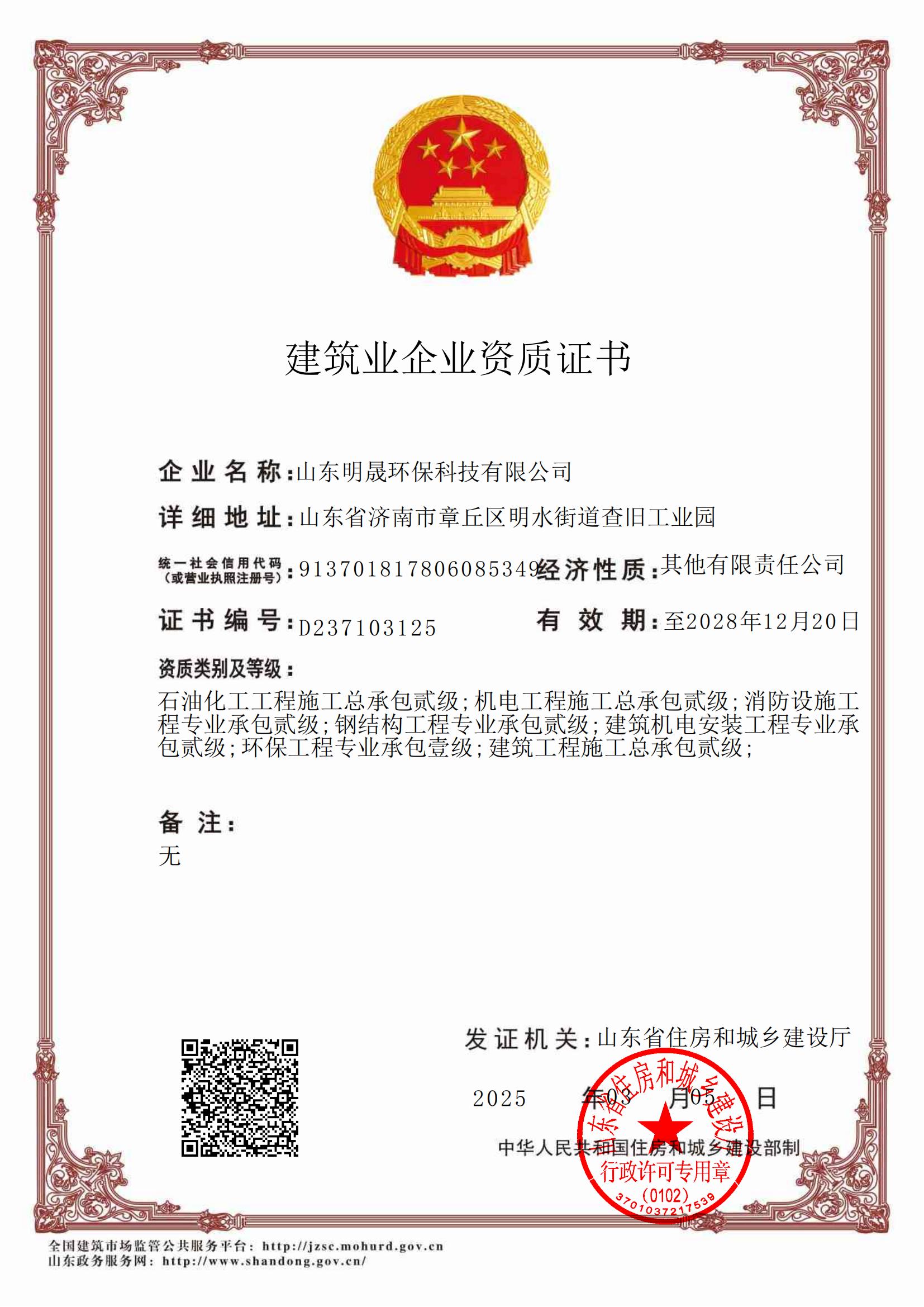 | 發(fā)證機(jī)構(gòu) | 山東省住房和城鄉(xiāng)建設(shè)廳 | 發(fā)證時(shí)間 | 2025-03-05 |