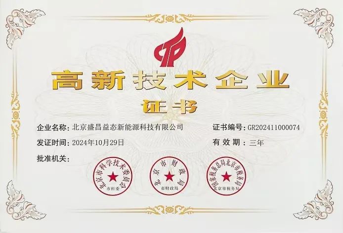此次榮獲“國家高新技術(shù)企業(yè)”稱號,不僅是對盛昌益態(tài)綜合實力的高度認可,更是對公司長期以來堅持綠色清潔能源研發(fā)和推廣的肯定。