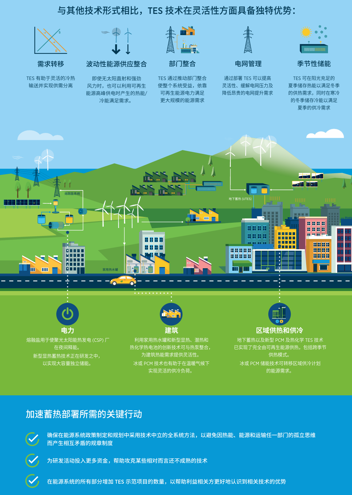•TES 技术具备独特优势,例如供热供冷需求与x发电(sh)和能源供应的可用性分R由此带来的灉|性促成了更广泛利用太阌和风能等波动性可再生资源的可能性。利用TES 可减成本高昂的늽提升需求,帮助q季节性需求ƈ支持向以可再生能源ؓ(f)ȝ能源pȝ转型?